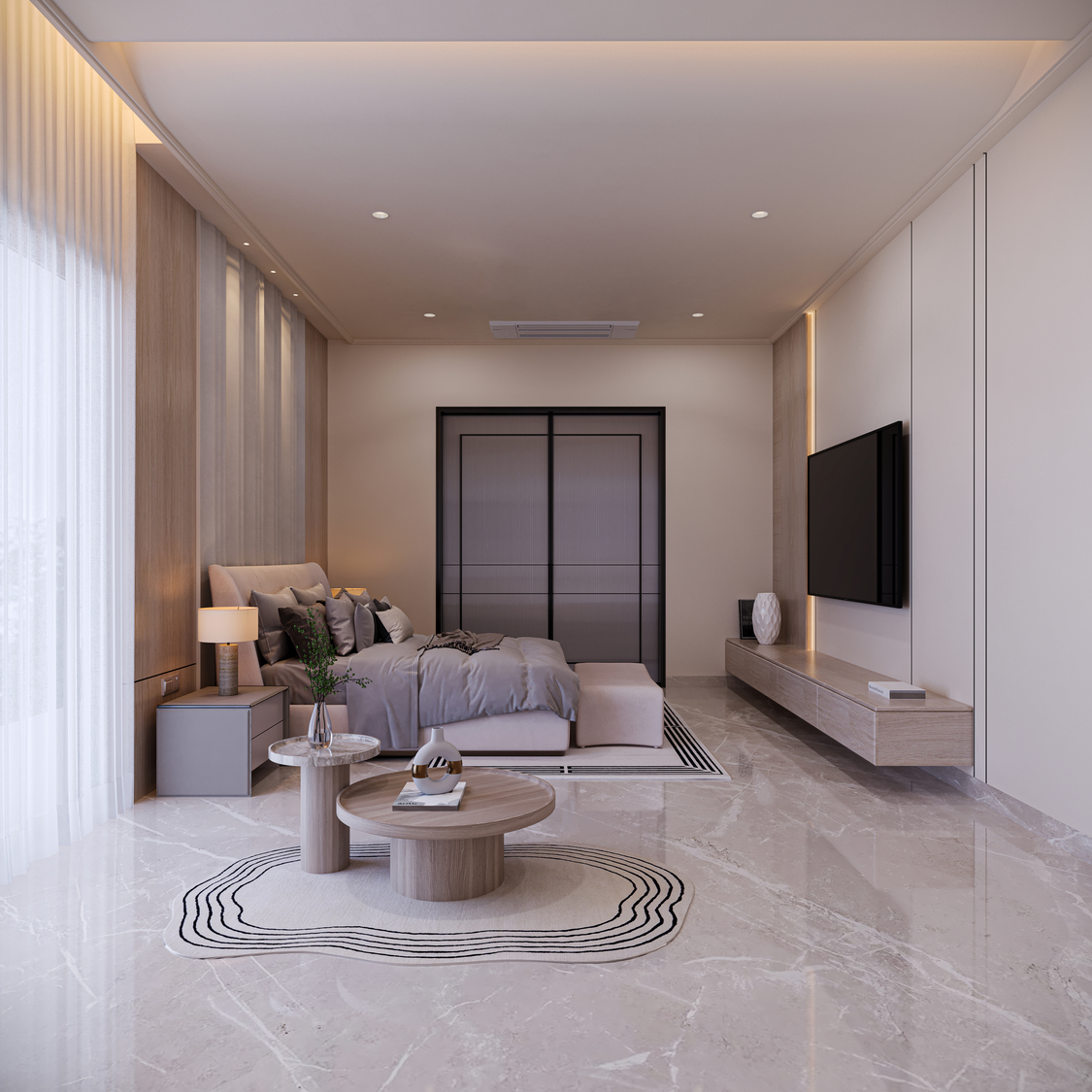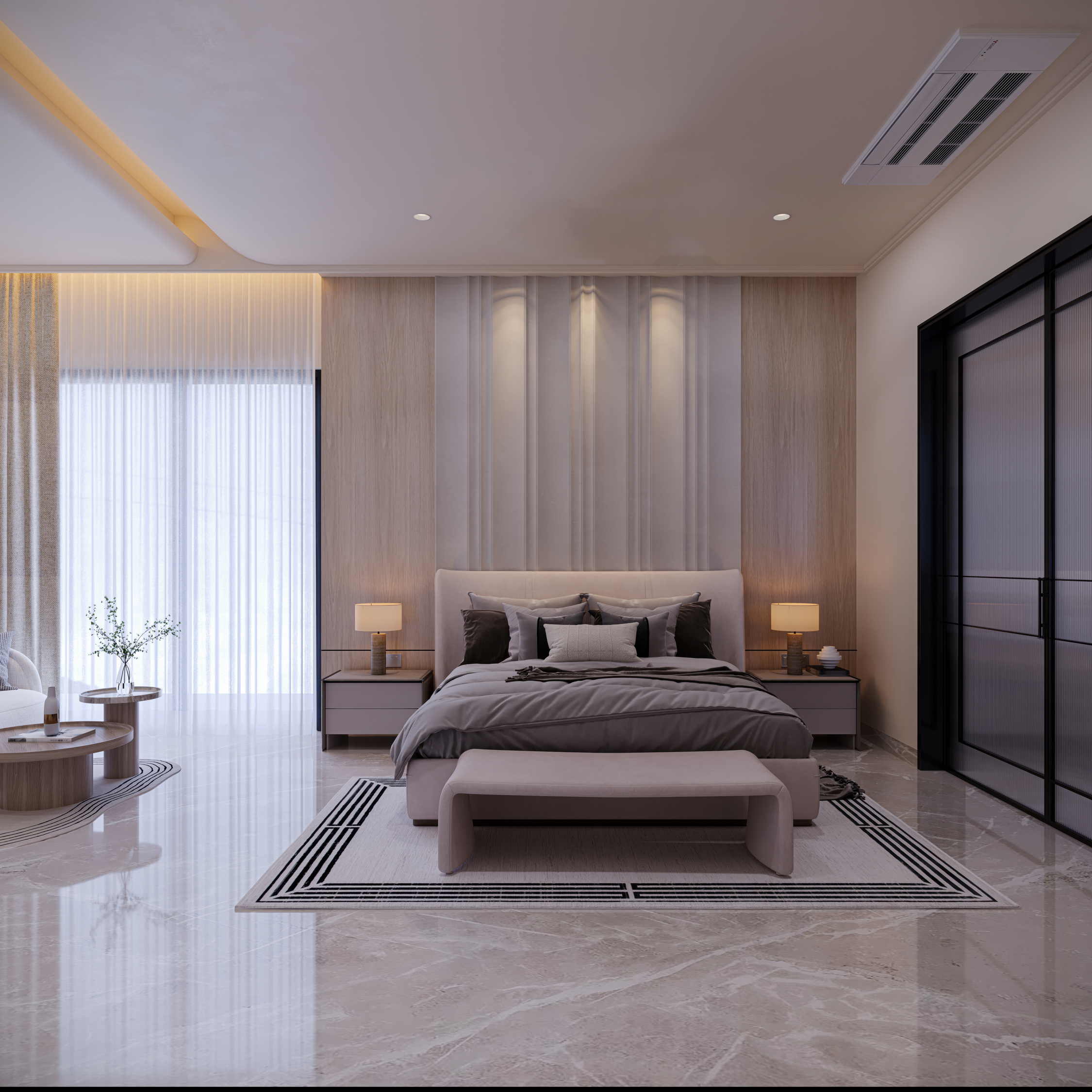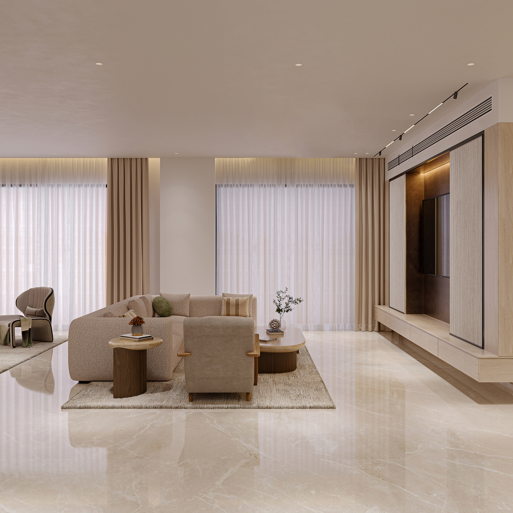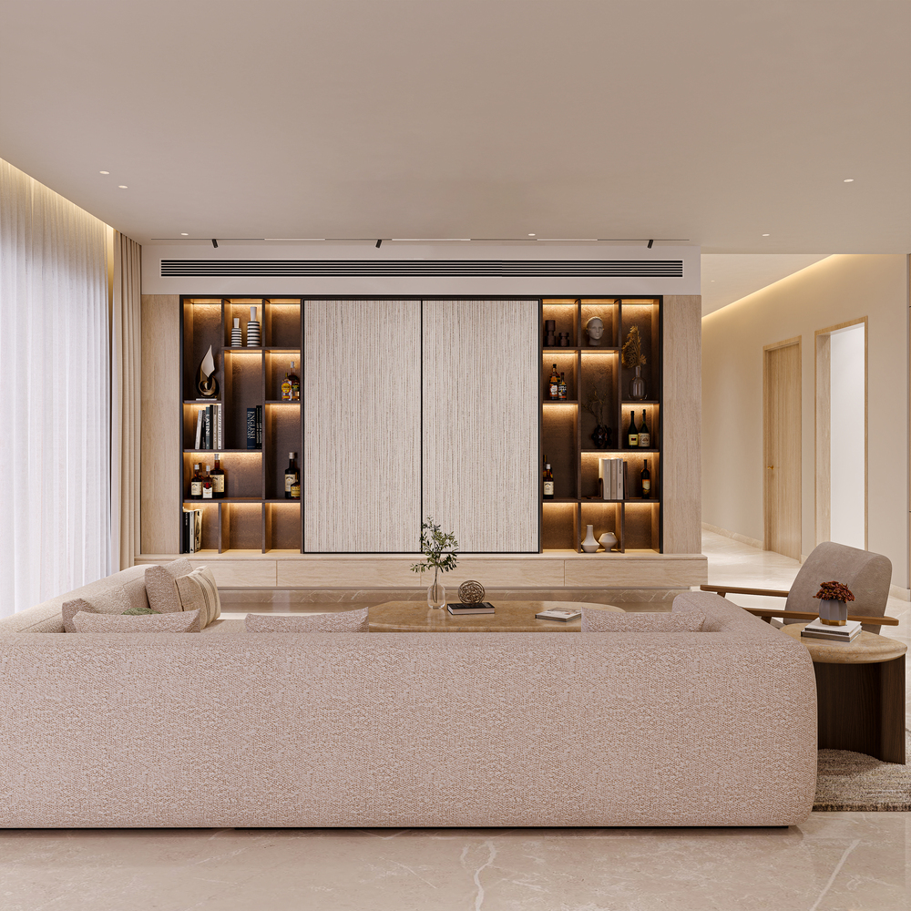A harmonious blend of natural textures and refined finishes adds depth to every space within the residence. Warm woods, matte metals, and smooth stone surfaces are paired with precise detailing to elevate the visual narrative.