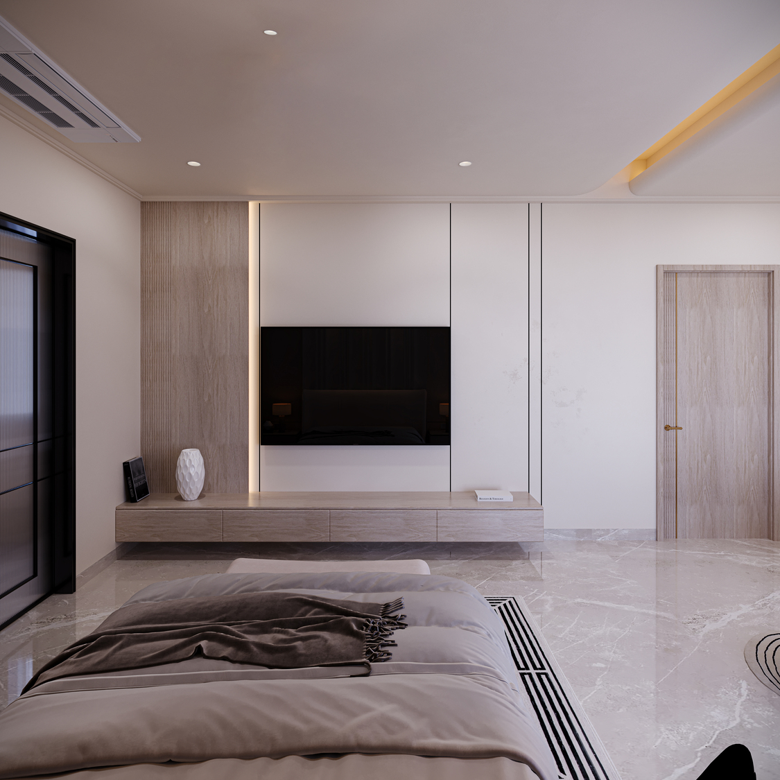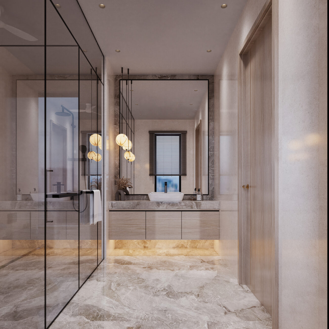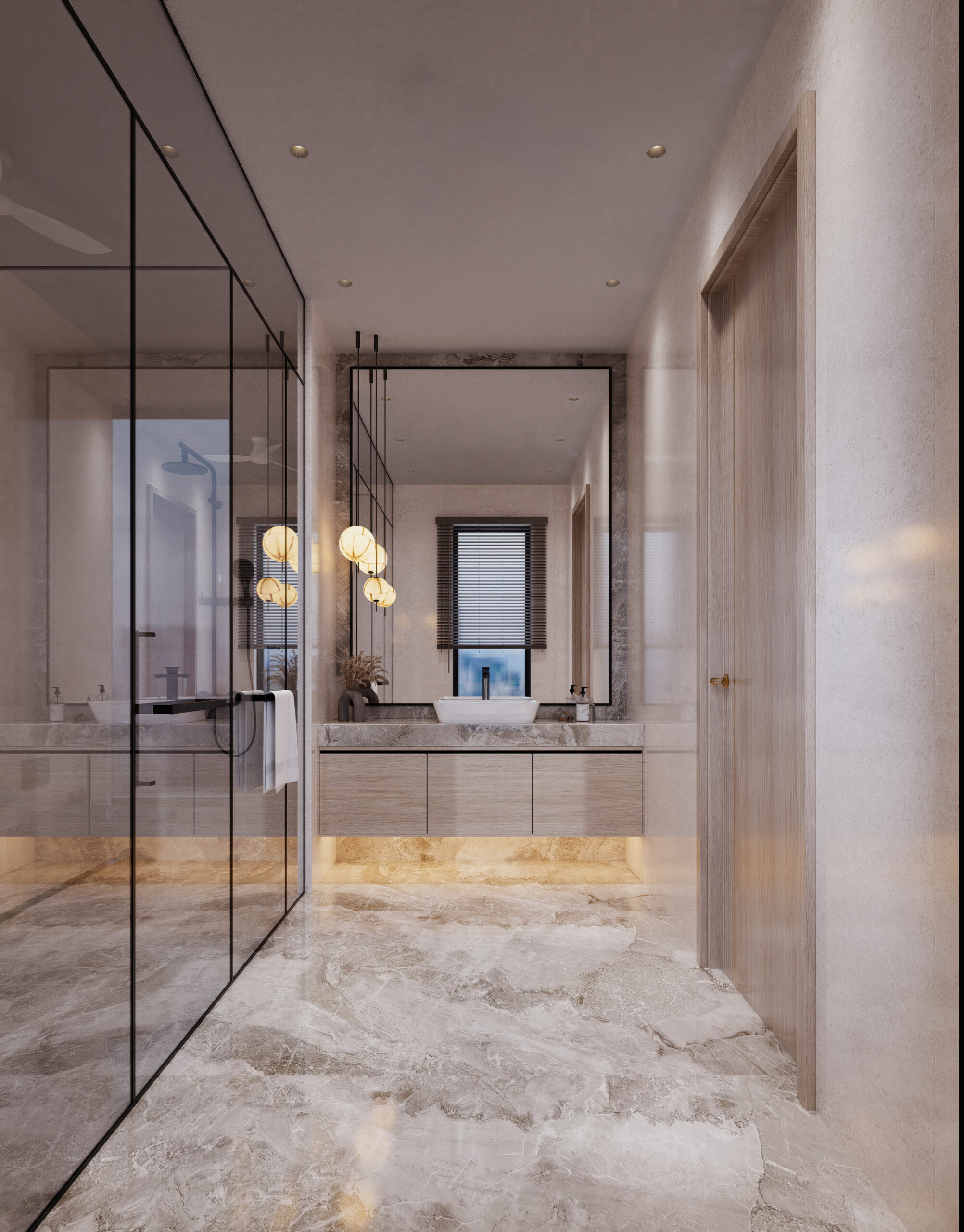 A harmonious blend of natural textures and refined finishes adds depth to every space within the residence. Warm woods, matte metals, and smooth stone surfaces are paired with precise detailing to elevate the visual narrative.