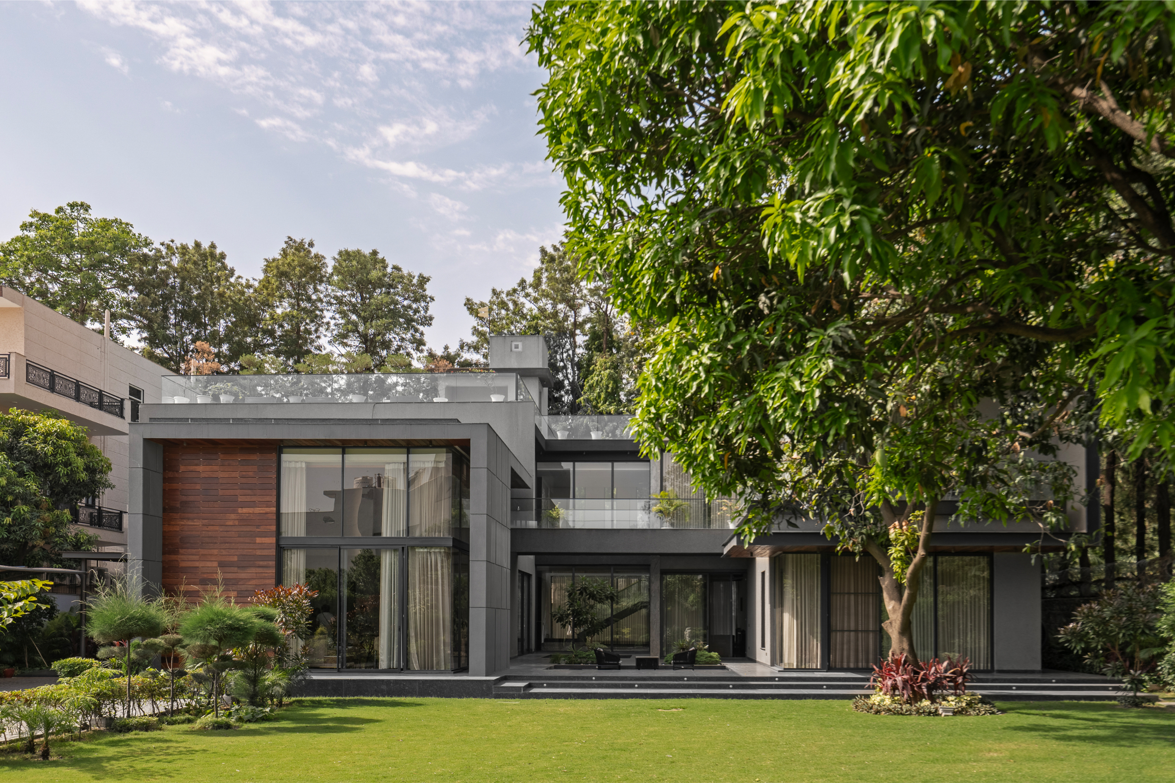 The residence evokes a contemporary design language with clean lines, modern materials and a